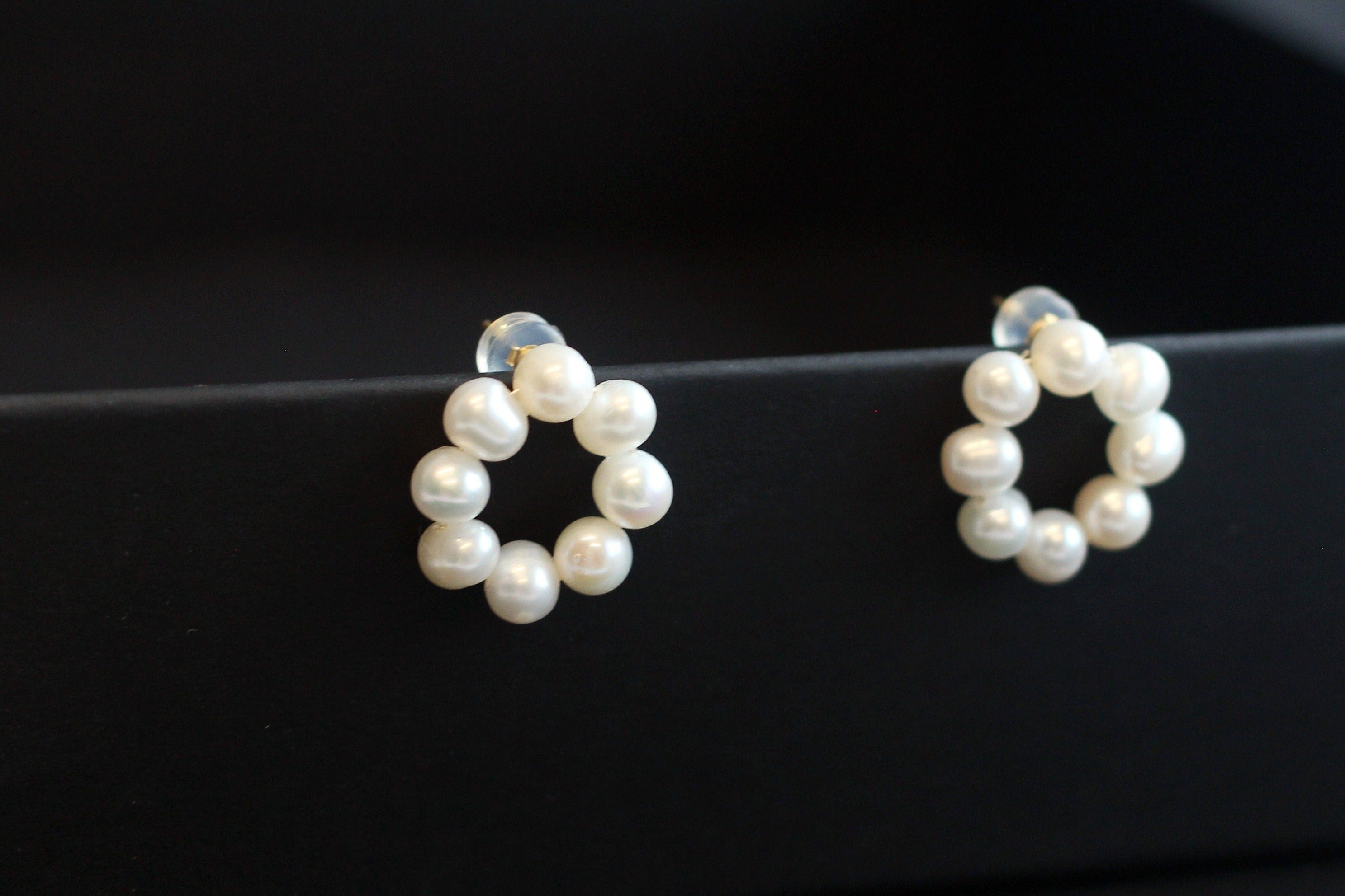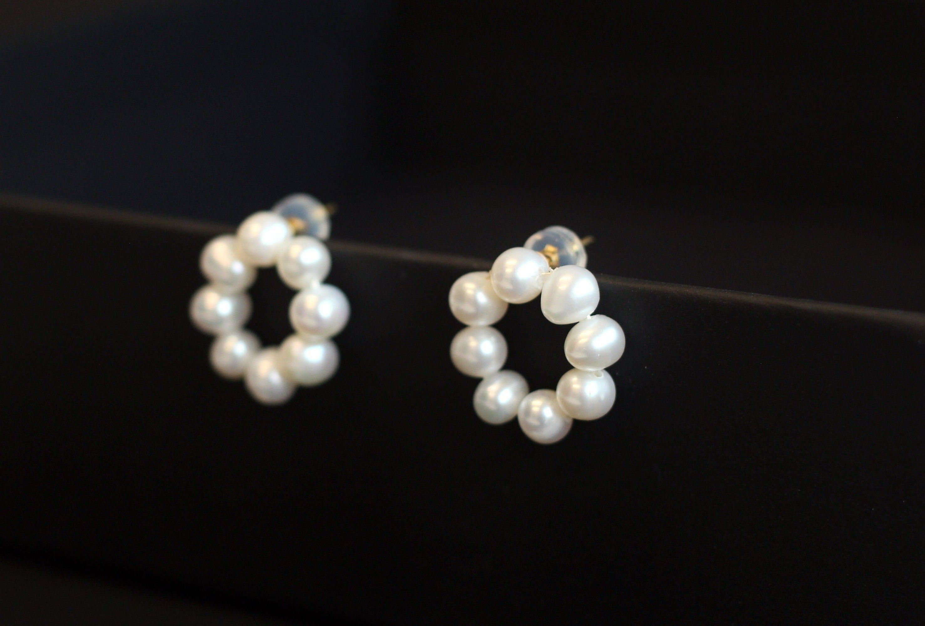 - Features delicate 2 mm freshwater pearls arranged in a unique, elegant floral-inspired hoop design.