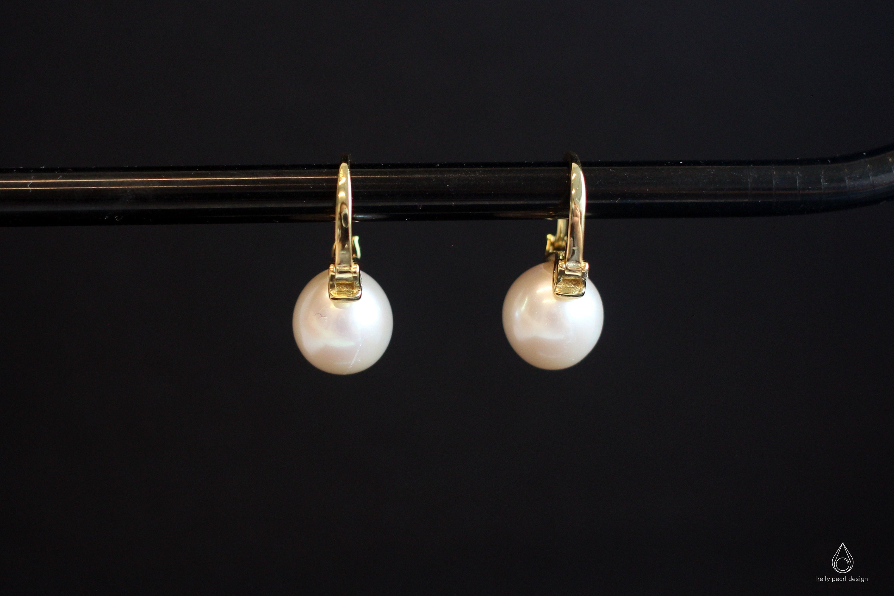 Caellia White AAA Pearl Hoop Earrings – 10-11mm Round Pearl Jewelry