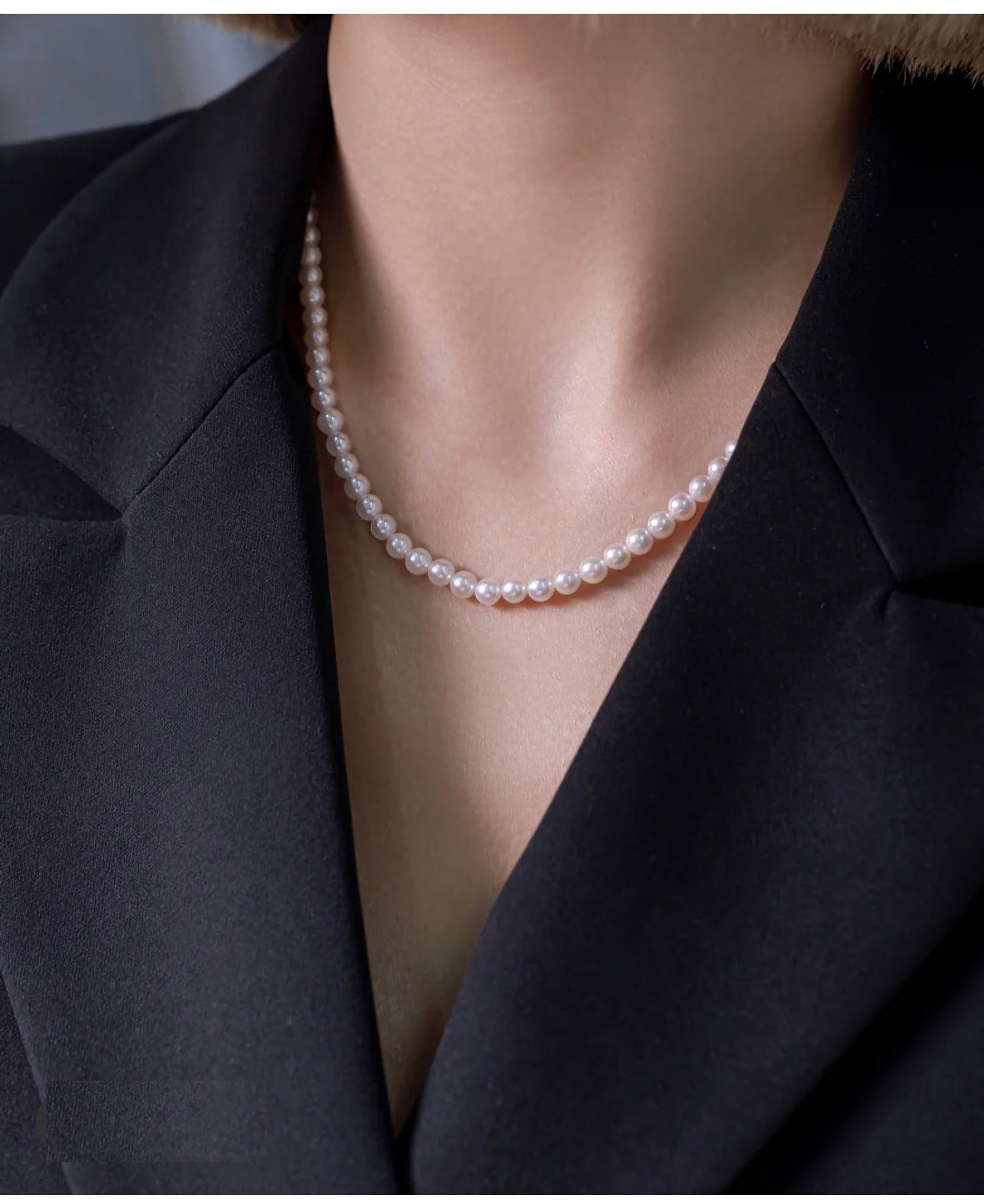 Discover the Caellia Freshwater Pearl Necklace with an exquisite 18K gold clasp – a 17-inch strand of AAA+ white pearls that promises to bring that refined charm to your wardrobe. Crafted to enhance any neckline, this necklace delivers understated luxury for the discerning woman on the go.