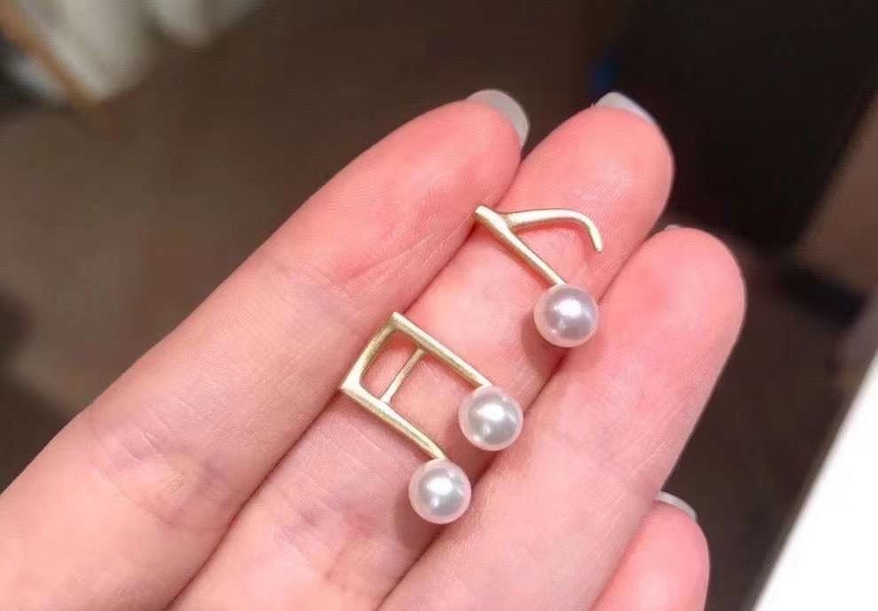 These charming freshwater pearl note stud earrings are a delightful blend of elegance and playfulness. Designed in an asymmetrical musical note shape, they resemble two dancing notes, capturing the essence of rhythm and melody.