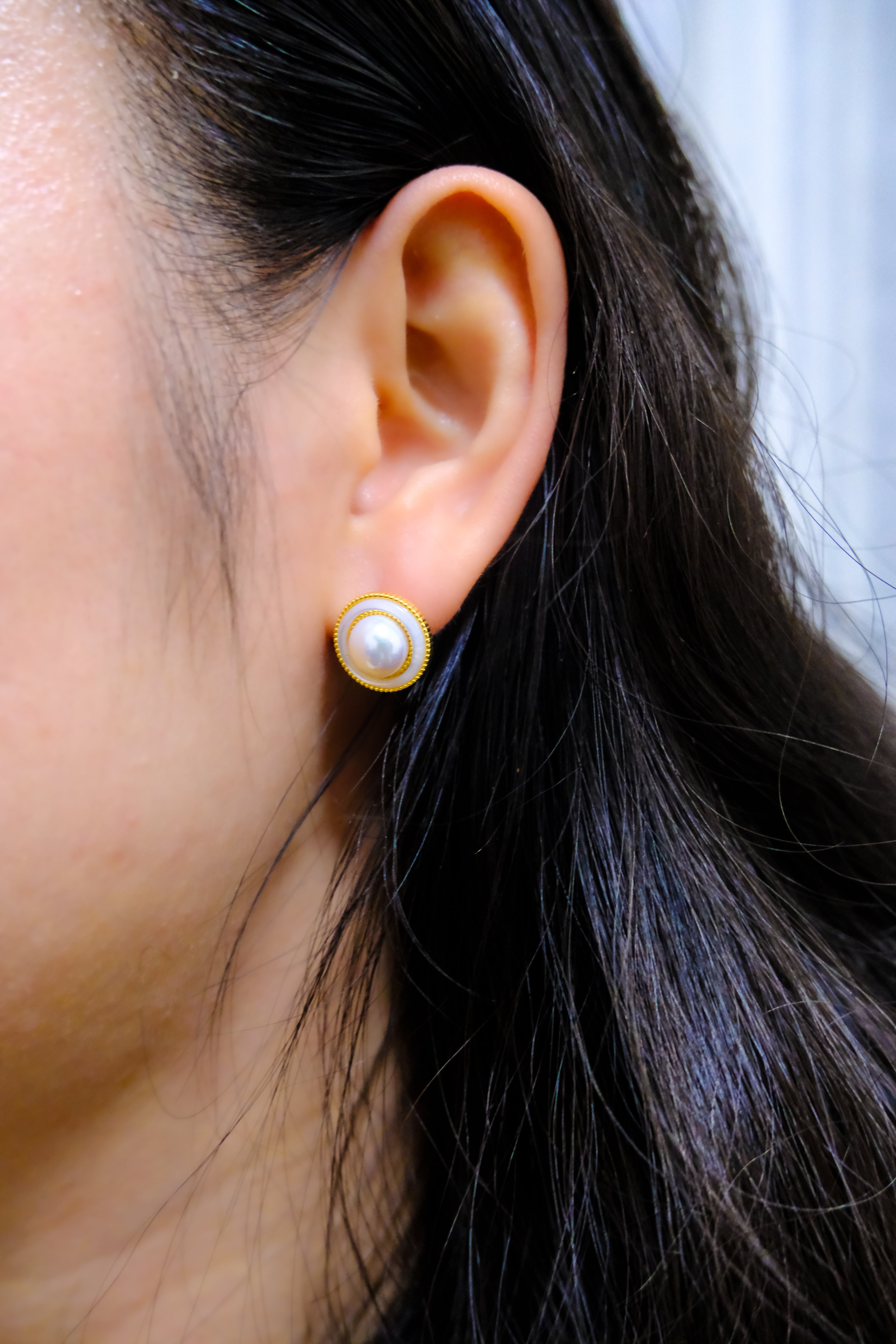 - Materials: Genuine, large freshwater pearls set in a sleek, gold-plated circular frame.