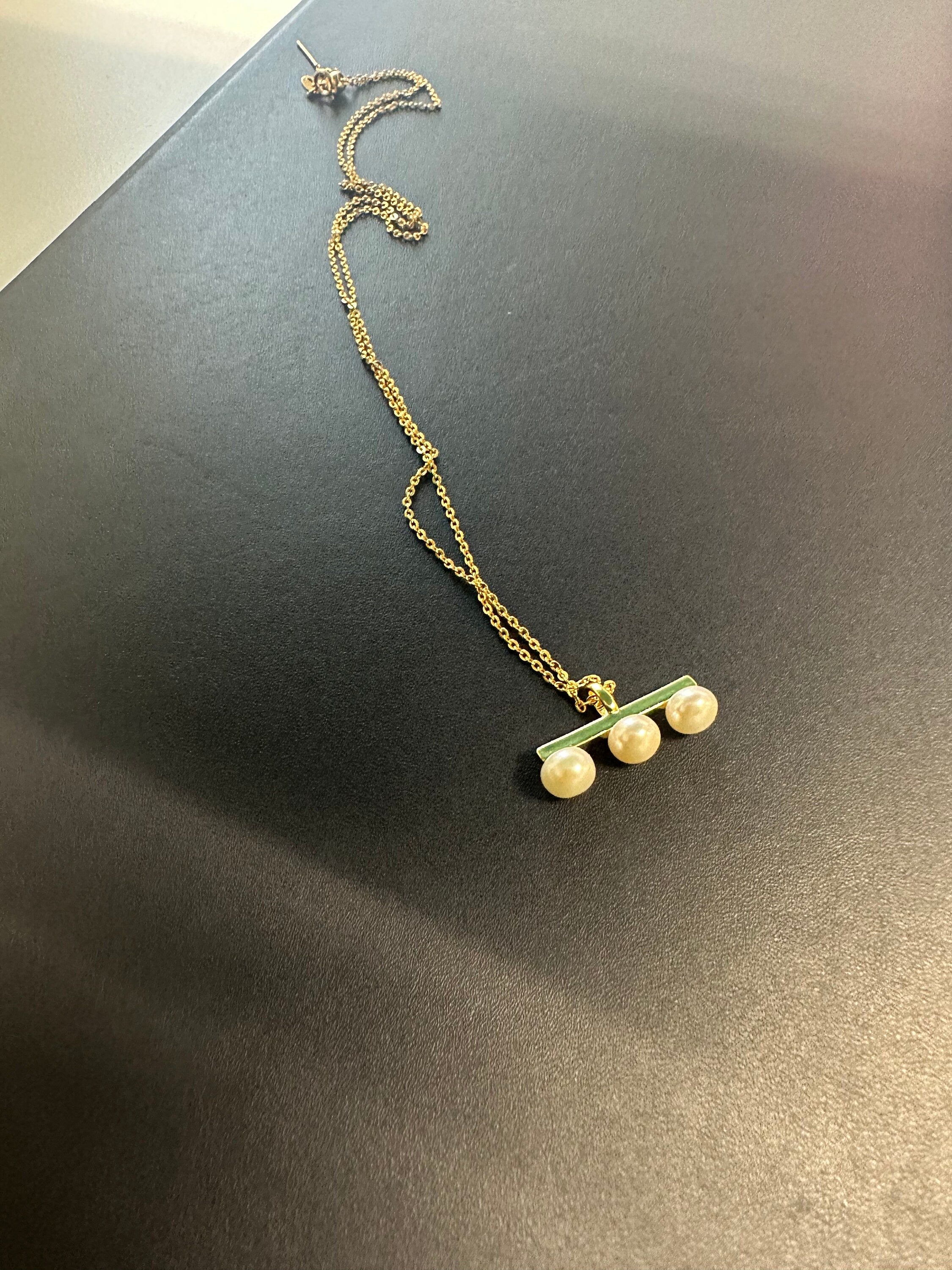 Three Pearls Pendant Necklace – Gold Plated, Adjustable Chain